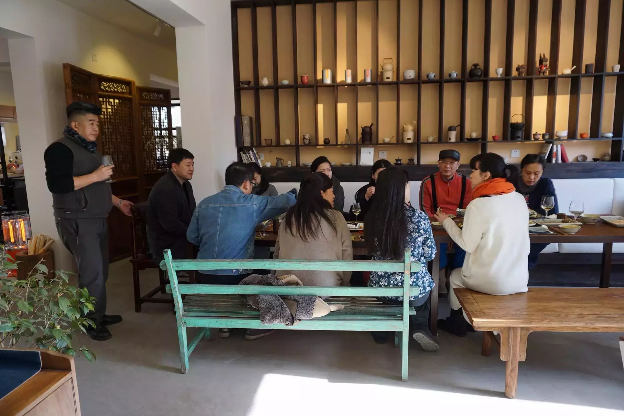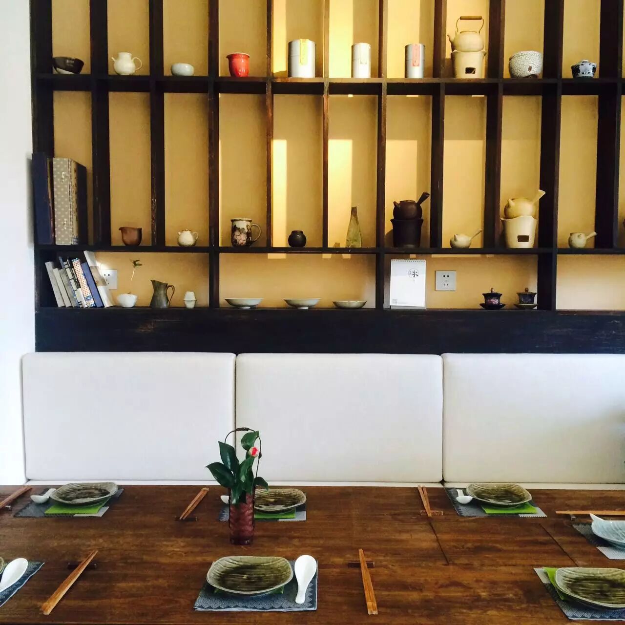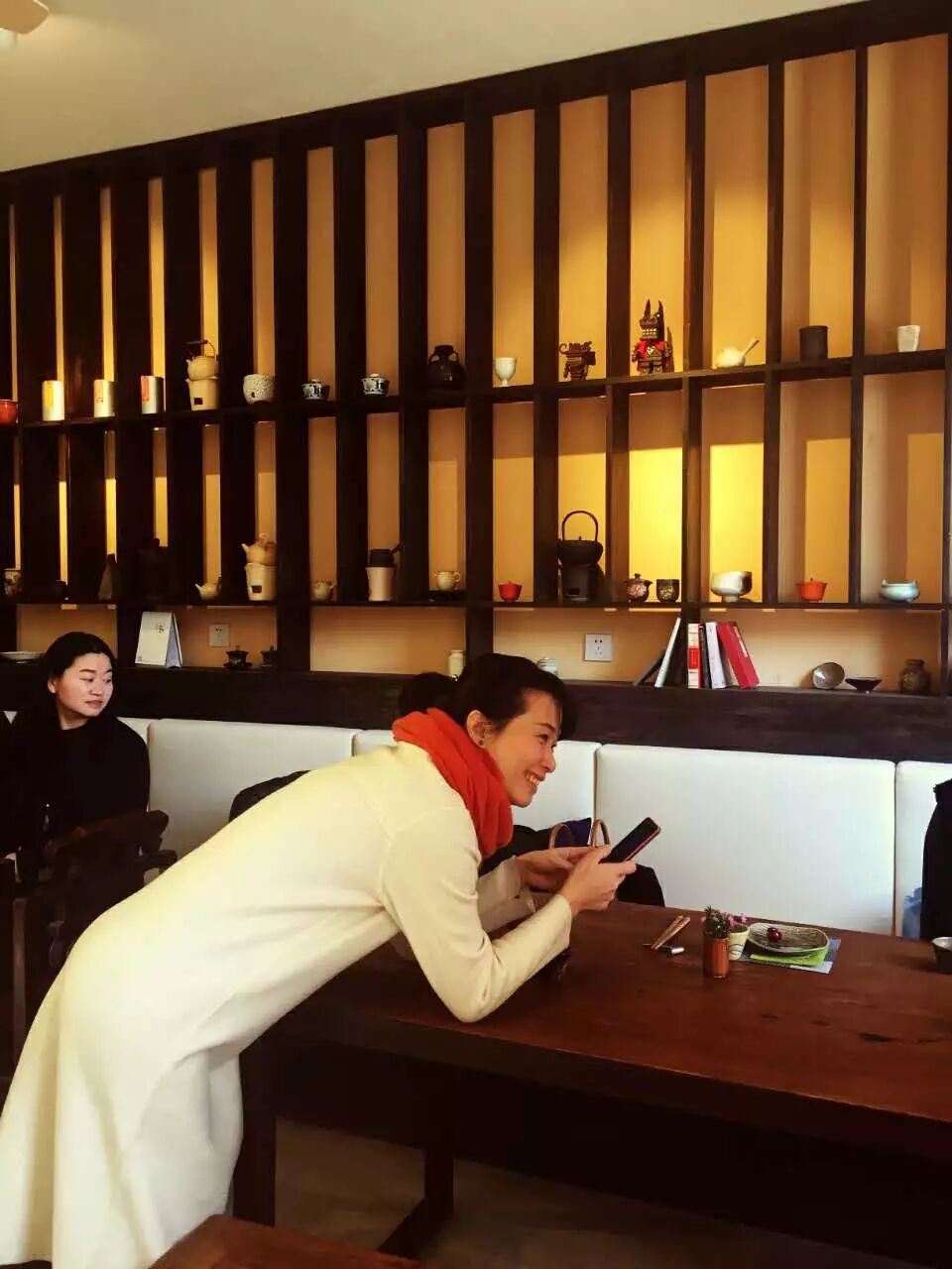空間因為有著正在展出的古董家具而顯得典雅,而雪柳像是趕著過年一樣的盛開。
