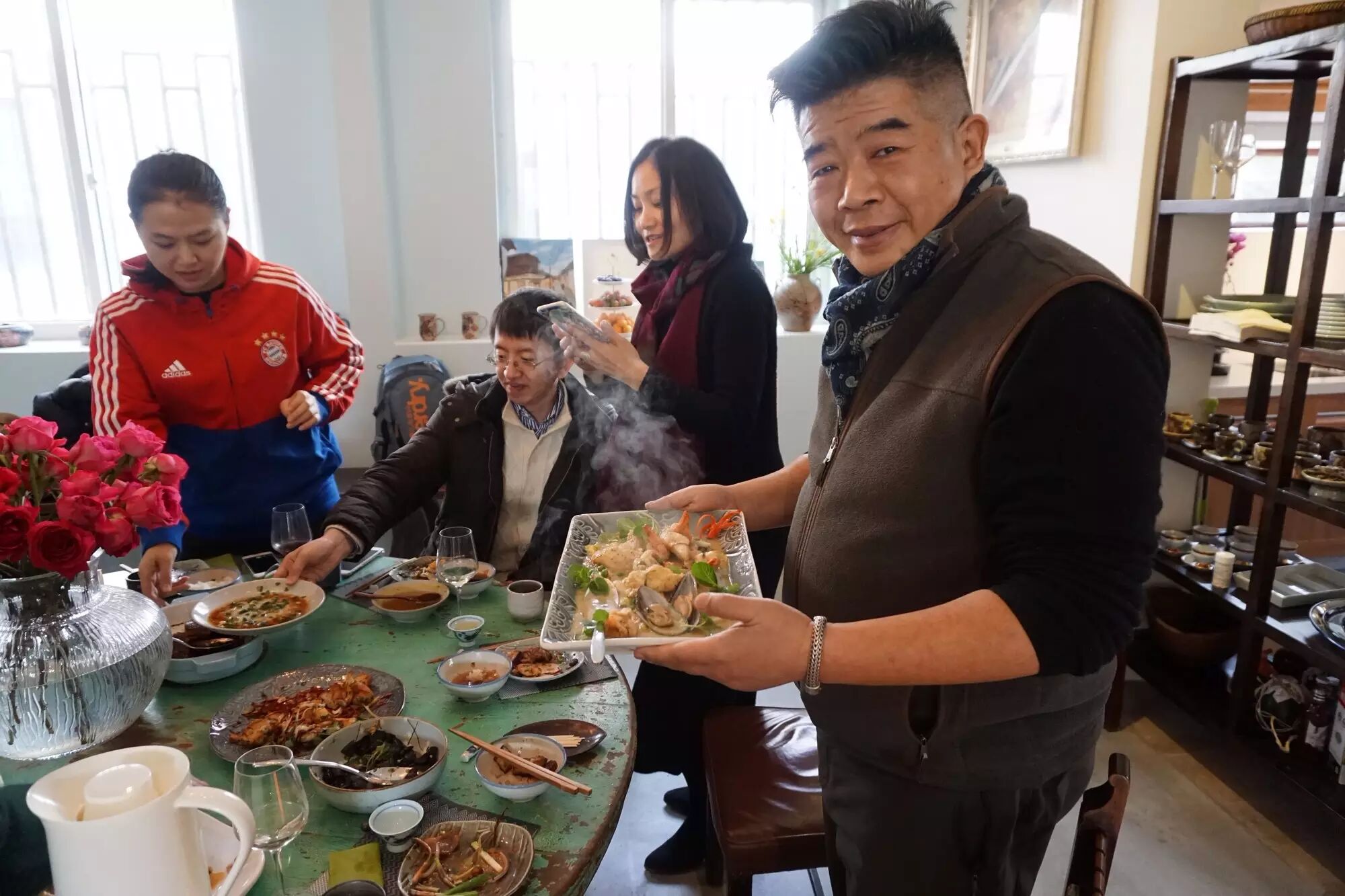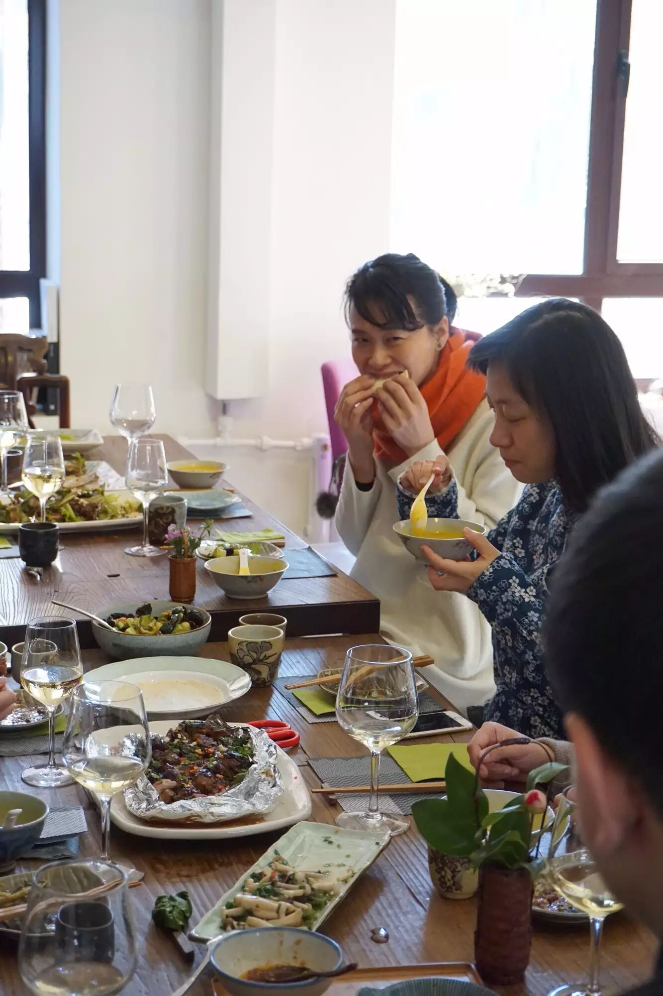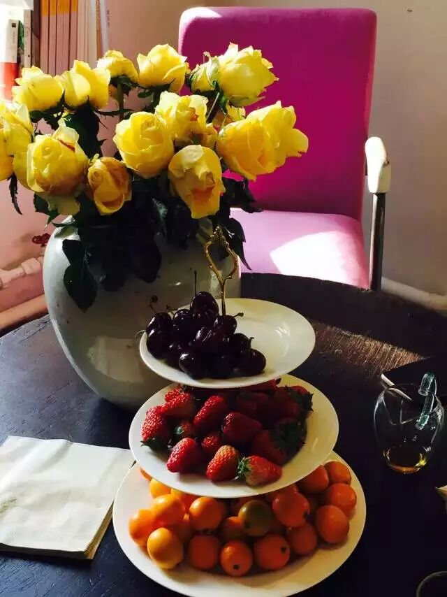一進門就聞到溫暖的食物的香氣。很喜歡每次私房小廚活動的清晨,屋子裡有食物香氣,有各色鮮艷的食材,有切菜洗菜聲,窗戶上有水蒸氣,輕鬆的忙碌感,很生活,好像我是從豪宅樓上走下來檢視今晚要宴客的廚房狀態的女主人......:-) 哈哈!這個時候做個白日夢也挺美的。