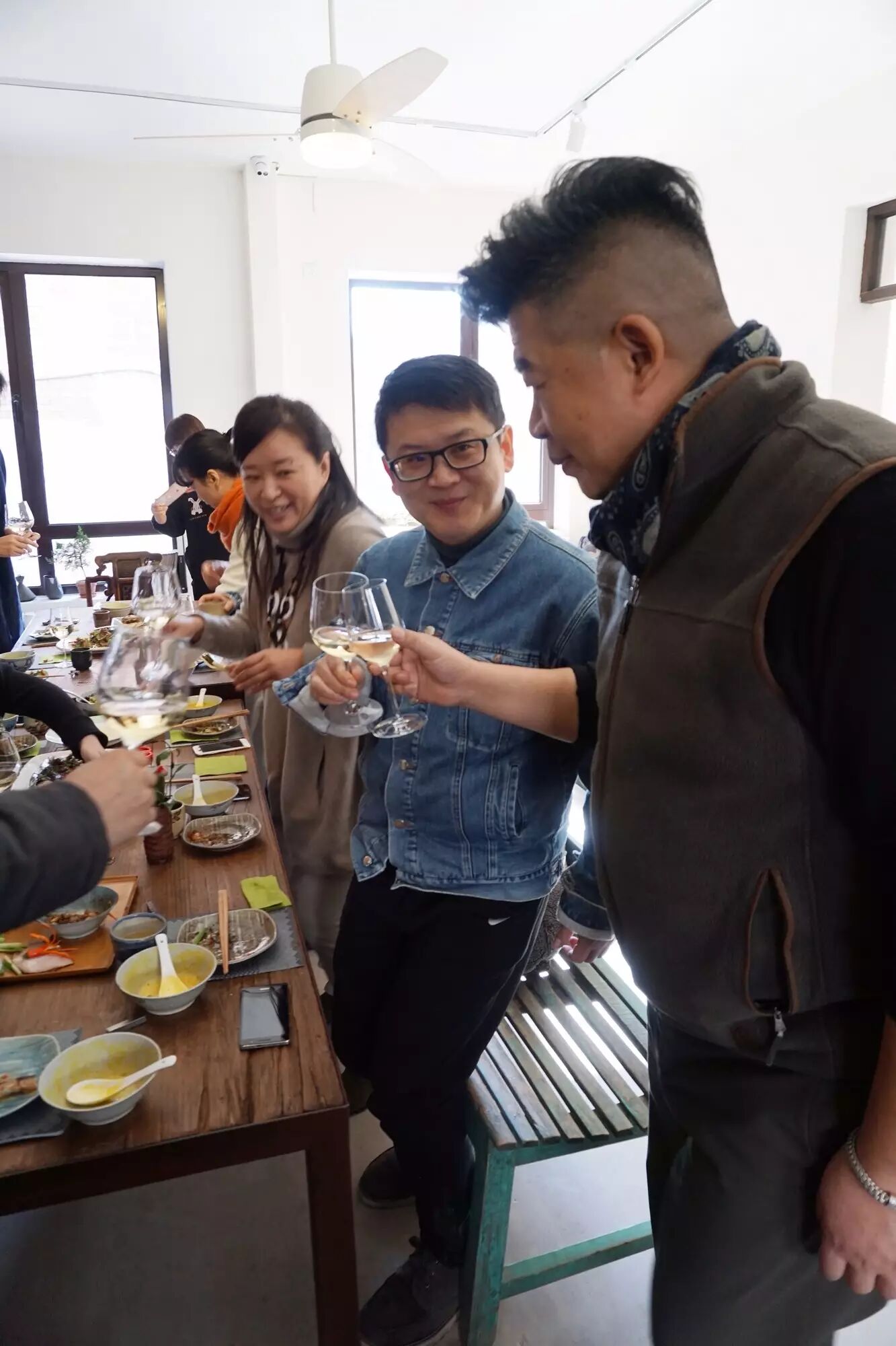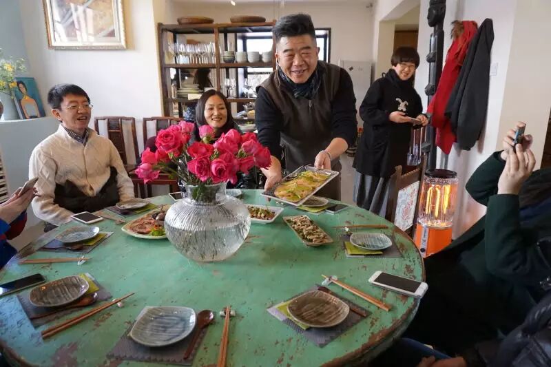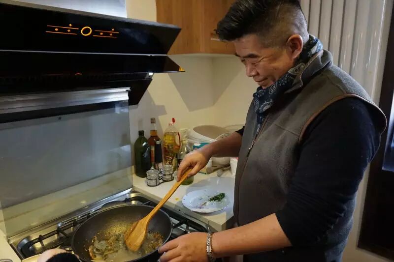 第一次見到粉哥的時候就覺得很親切,因為我從小家族裡就有三位「總鋪師」堂兄,就住在隔壁, 我可以說一年裡要吃到無數次的鄉下宴席菜,所有婚喪喜慶的菜都差不多……。一般「辦桌」請客時,家裡客廳通常只能擺下一兩張請客的圓桌子,所以大部分的桌椅都要擺在戶外,因為每家每戶都會請很多桌, 廚師的臨時廚房通常也會在距離宴席處不遠方便的戶外位置。小時候,坐在椅子上等開席的時候,通常都會忍不住先跑去廚房偷看一下,甚至吃到一半的時候,也會跑去看看後面還有什麼菜。這個場景也很像我們今天私房小廚的活動現場,非常熱絡,可能也是因為我們席開兩桌的緣故,左右互串,很有吃喜宴的感覺。覺得粉哥親切是因為他真的很像我小時候對我那些廚師堂兄們的印象,當然我的堂兄們沒有那麼文藝,更沒有那麼創新。