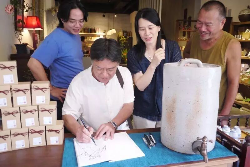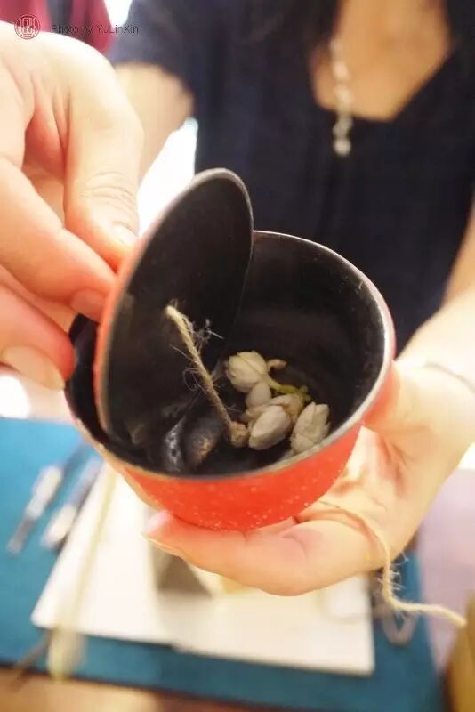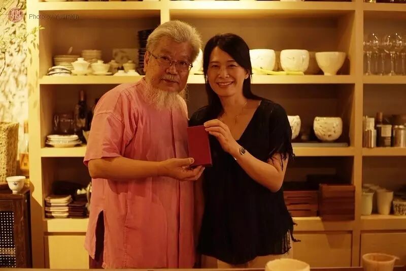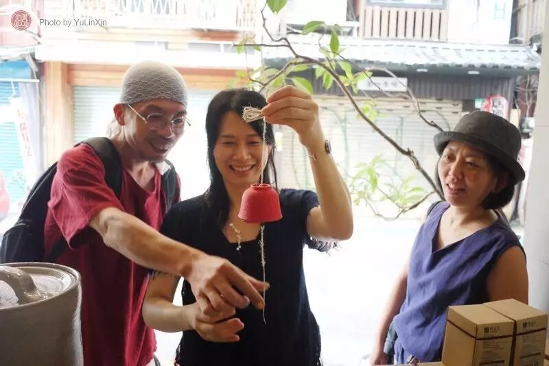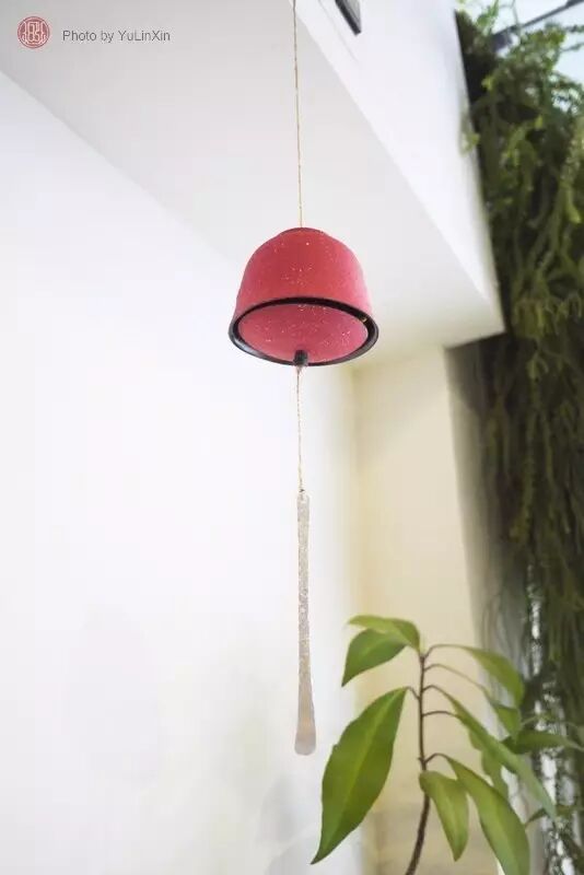 從台南北上的美子與大雄老師,特別送上了兩人合作設計的、獨特的禮物-以美子的紅牆蓋碗及大雄的短版茶匙構成的風鈴,搖動時,還有白茉莉緩緩落下~