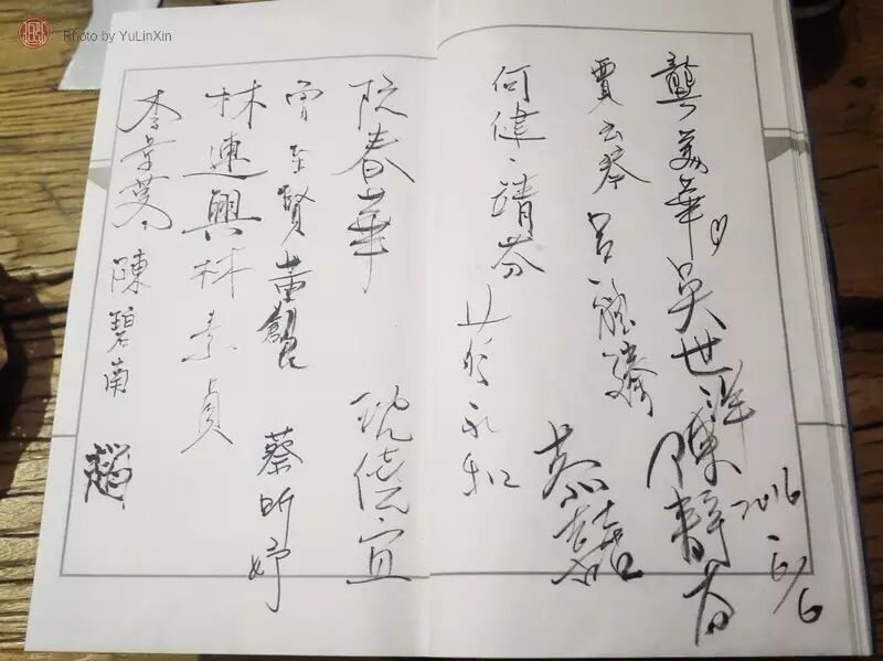 自開場葉東泰大哥簽了長長一首:【永康街-台北的茶壺】後,簽名簿上開始爭奇鬥艷,最好比面積,面積比不過比字多,字數比不過比圖案,圖案比不過比精巧,各有千秋......但也有偷懶的默默地簽了個不太清楚的名兒就溜進去啦!