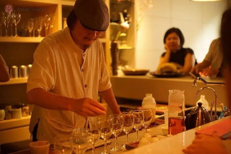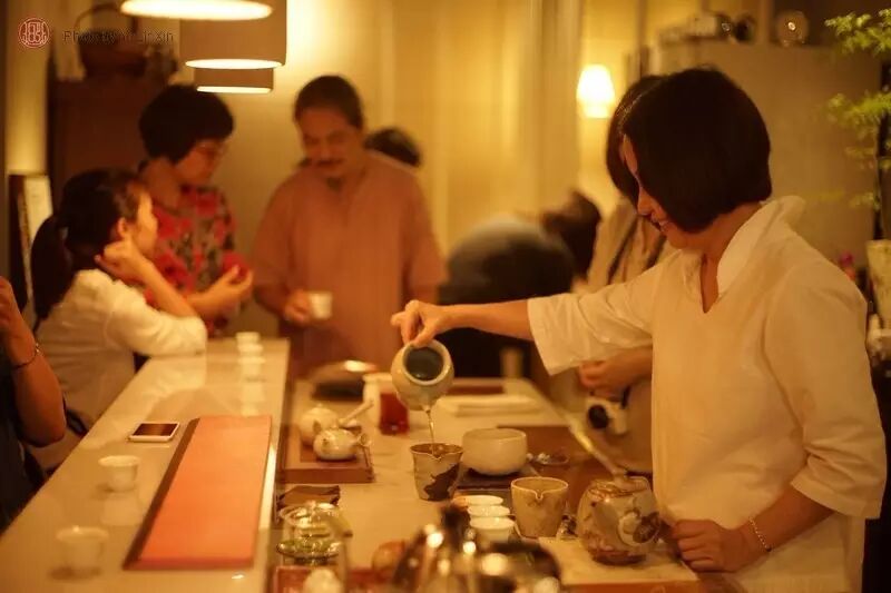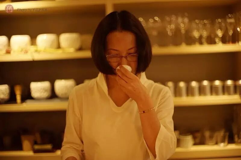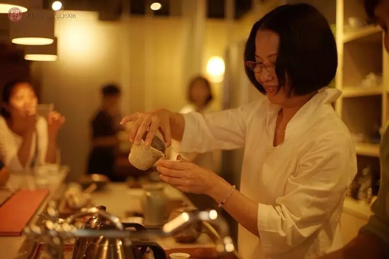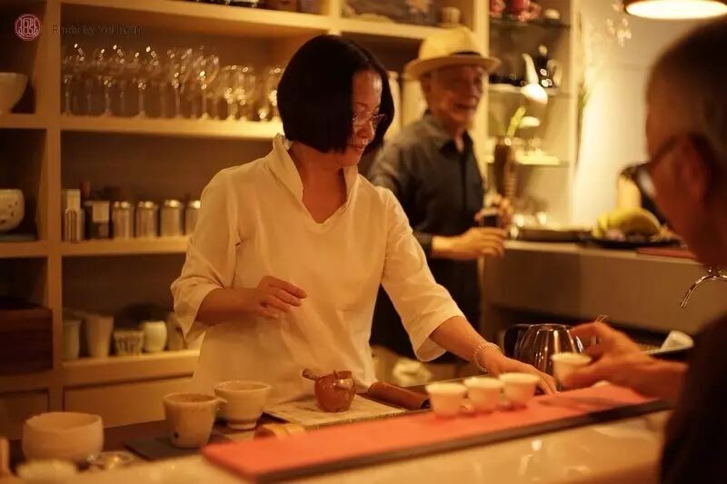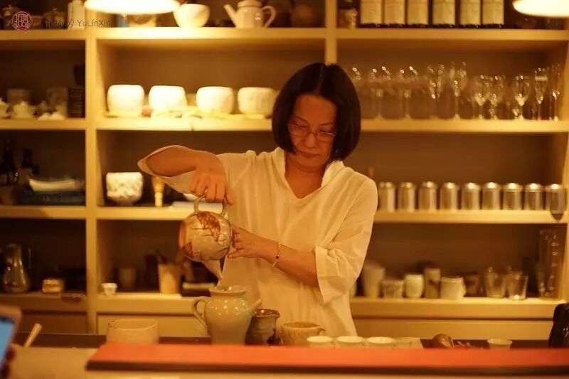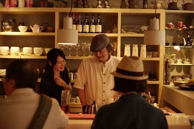 接在葉東泰後面,她馬上把現場高漲熱絡的氣氛轉為沉靜。隨手拈來茶具,流暢沉穩的事茶,吧檯前人影浮動,絲毫不影響她獨特的氣場。
