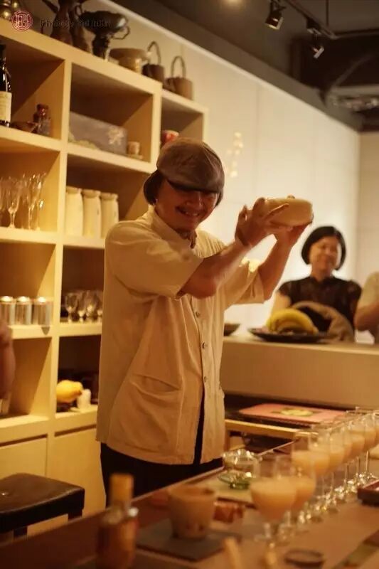 台南『奉茶』創辦人葉東泰大哥擔任了第一棒,拿出生平絕活-搖搖茶,特調主題是-「翻牆的杏仁紅茶」。用台南的現磨杏仁茶,冷凍後用保冷箱扛上台北,搭配我們的日月潭紅茶,為了顯露出她的國際化,又加了些許的白蘭地,搖來搖去,成了一杯會翻牆的杏仁紅茶,受到熱烈歡迎~